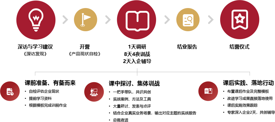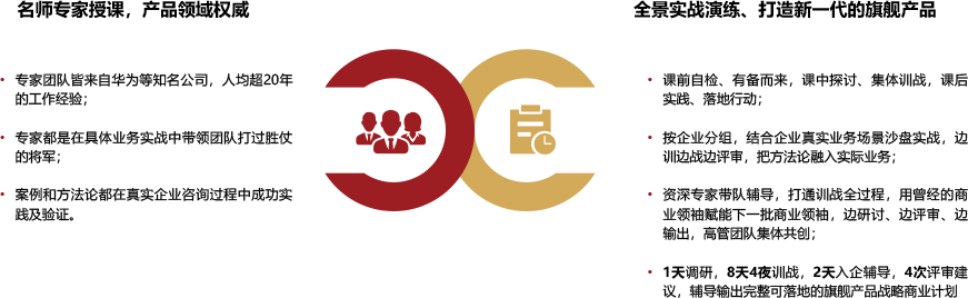 全景實(shí)戰(zhàn)演練、通過4個(gè)月陪跑,專家與高管團(tuán)隊(duì)共創(chuàng)清晰的旗艦必勝之路,打造新一代的旗艦產(chǎn)品