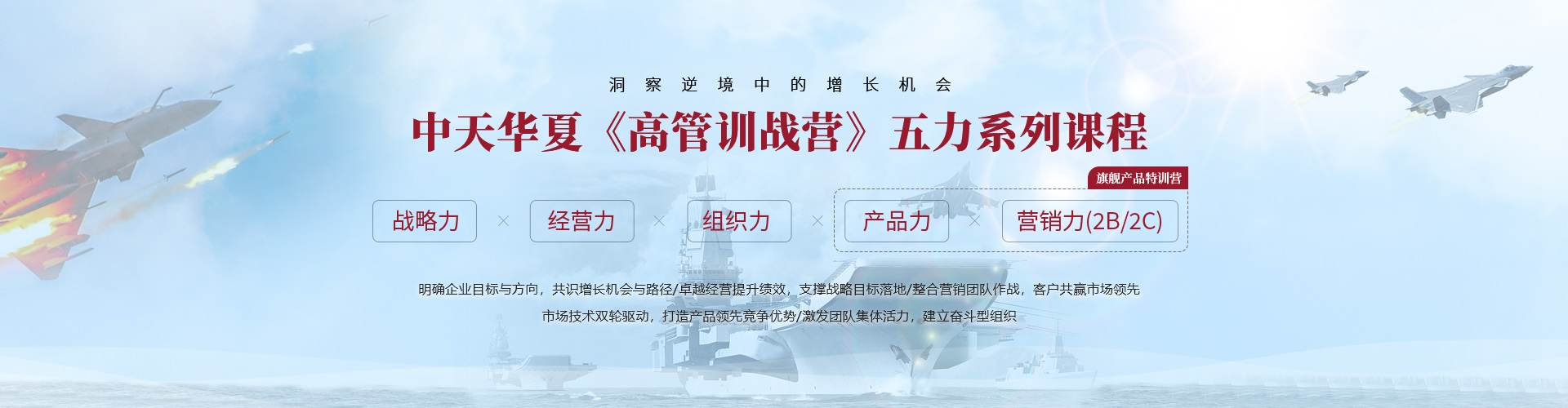 中天華夏利用自身優(yōu)勢,整合行業(yè)資源,以高管訓戰(zhàn)營的形式開展系列課程,總結(jié)知名企業(yè)成功管理經(jīng)驗,洞察逆境中的增長機會,賦能企業(yè)增長!